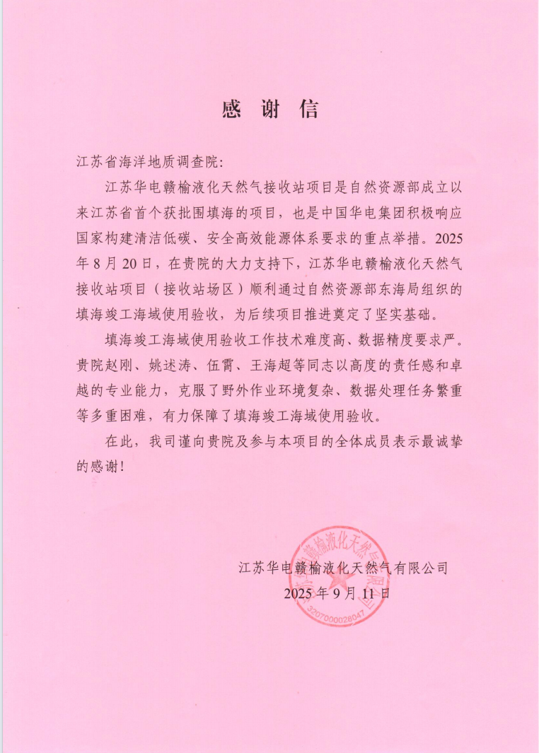 专业技术服务奠定围填海项目坚实基础 我院工作获业主单位致信感谢